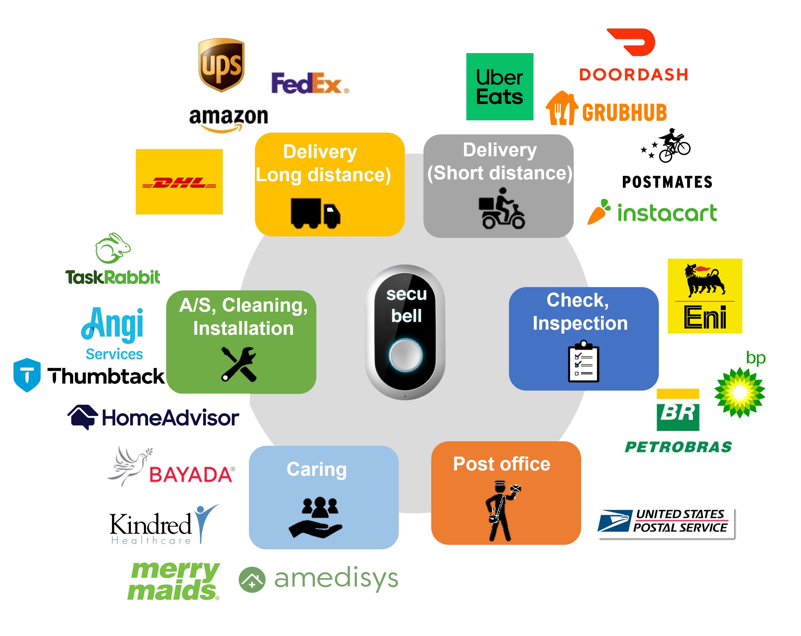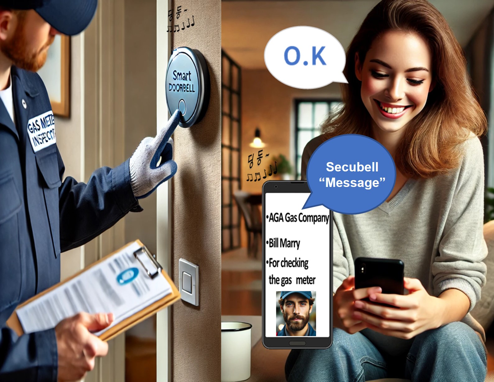 Using the Smart doorbell(secubell) that authenticates visitor information, we provide a "Safe Visit Service" at home, allowing residents to instantly know who the visitor is through their smartphone. For other places that require access control, we offer a "Smart Pass Service" that enables immediate authentication without the need for ID cards, access cards, or tickets, allowing direct entry.